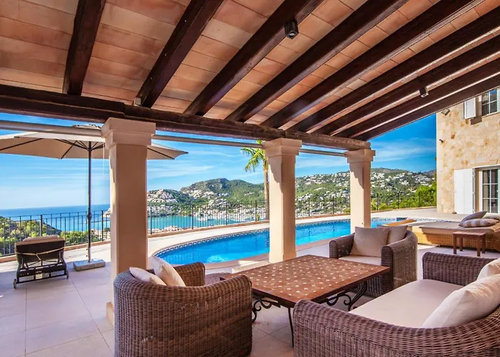Gasten kunnen genieten van een kust uitzicht op de zee vanaf een terras in de 5-slaapkamer Casa Lejolie Villa Puerto de Andratx, op 4 km van de Asociacio Cultural Sa Taronja. Deze villa ligt binnen 10 minuten rjden vanaf de Golf van Andratx en beschikt over een zwembad met een sauna.